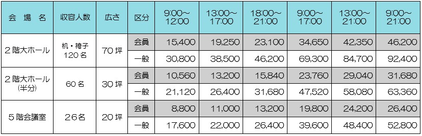 泉大津商工会館貸室料金表(税込)